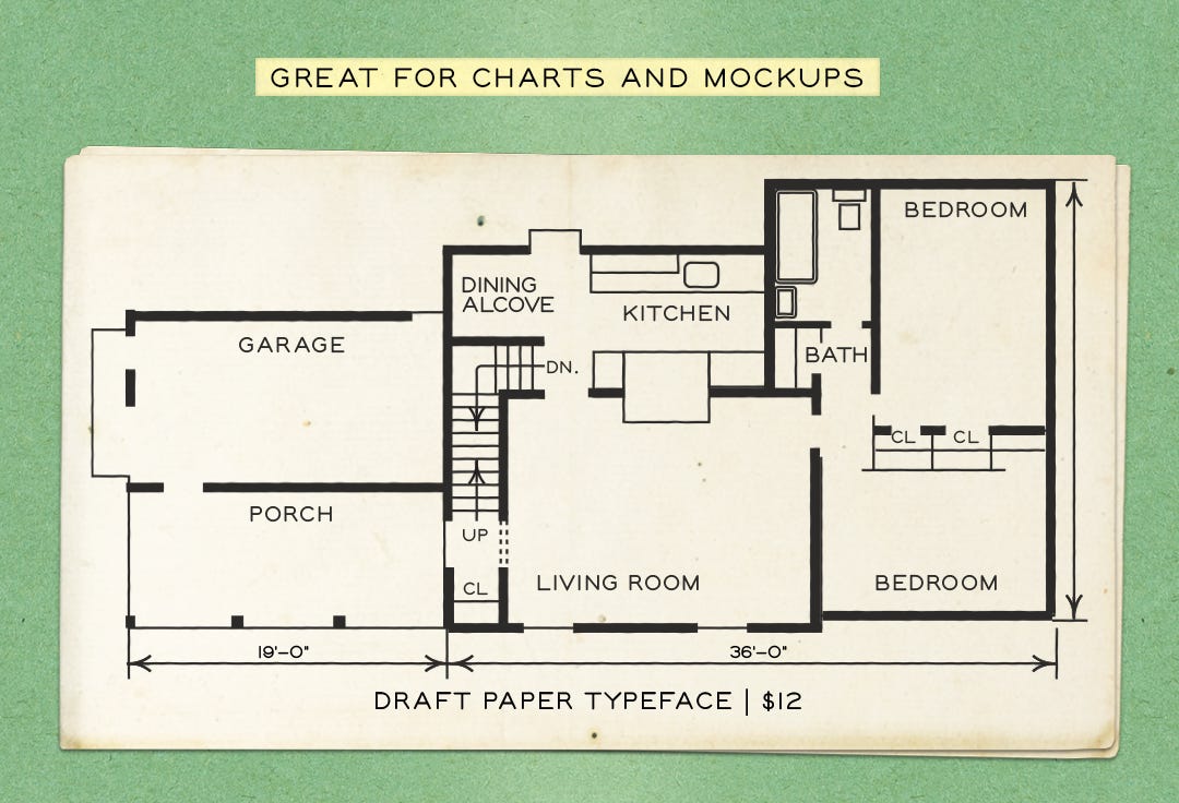 I’m excited to infuse this typeface into my own work, as I find myself working on projects that need authentic-looking “blueprint” type details, such as dates, small captions, sub-headers, and fineprint packaging information for manufacturing and ingredients.