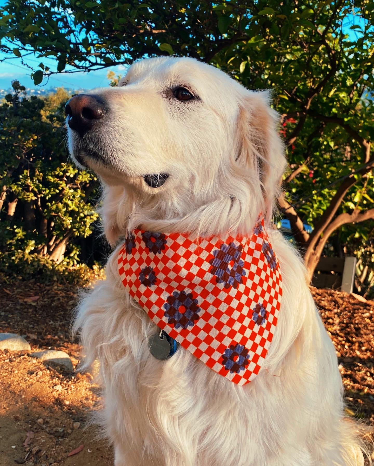 I once bought a really fancy printer, for which I ended up wanting to throw it out a window. I then bought a whole “sublimation printing” setup. Sublimation printing sold me on the idea that I could create my own custom fabrics, hats, cups, mugs, and more. However, I quickly learned how much environmental waste it contributes when you can only print on sublimation blanks, which are extremely low-quality “fast fashion” items. (See. They’re cheap and ugly. Sorry!) I also found sublimation ink to be super unreliable in terms of the color output. Here’s a picture of my dog Snacks wearing a bandana I printed for him using the sublimation printer and heat press. It worked ok, but this is as good as it got!